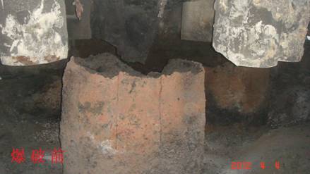 兗州中材建設(shè)有限公司云維項目部 實施石墨電極分解爆破 4月4日,應(yīng)云維乙炔化工有限公司(業(yè)主)要求,我項目部對其廠區(qū)1#電石爐內(nèi)石墨電極成功實施分解爆破。 本次爆破點位于業(yè)主電石車間二層電石爐內(nèi),技術(shù)人員和安全員經(jīng)現(xiàn)場勘查發(fā)現(xiàn):石墨電極為直徑1.2m、高約1.5m的圓柱狀石墨體,從中心呈輻射狀均勻分布12塊約1cm厚鋼板。三個電極呈“品”字狀分布在一個直徑約7~8米的幾乎密閉的鋼制反應(yīng)爐內(nèi)(有洞口)。爆前充分勘察了爆區(qū)周圍的實際情況,結(jié)合從網(wǎng)絡(luò)上搜集的對石墨電極的性能分析和以往的爆破經(jīng)驗,選用合適的爆破器材,擬定了幾種爆破方案。充分分析爆破方案的可行性后,選擇其中可行性較高的兩種方案進行了試爆,結(jié)合兩次試爆效果,經(jīng)調(diào)整爆破參數(shù)后,最終成功拆除。 本次爆破對僅隔約10米遠、正在生產(chǎn)的2#爐和庫房未產(chǎn)生任何影響。 這次爆破工作雖小,但我們本著謹慎、科學(xué)的態(tài)度對待。從爆破參數(shù)的選擇到安全警戒都認真小心,取得了預(yù)想的效果。 通過這次爆破,積累了對巖石以外材料的爆破經(jīng)驗,也增加了我項目部尤其是年輕人工作技能。也到了業(yè)主的認可。 孟永旺
