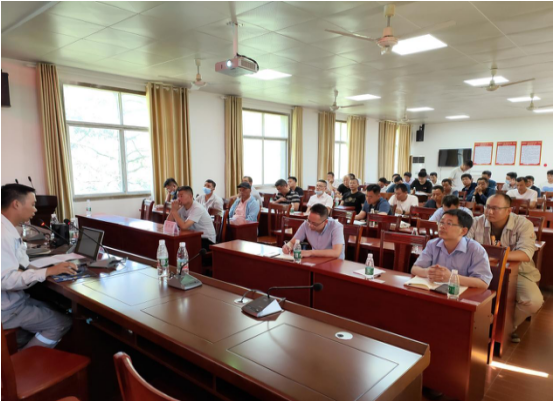 現(xiàn)場觀摩結(jié)束后,全體人員來到愛民鄉(xiāng)政府,分公司副經(jīng)理肖波、夏曉陽就礦山爆破安全、邊坡控制爆破技術(shù)及現(xiàn)場安全施工管理等方面對全體參會(huì)人員進(jìn)行培訓(xùn)。