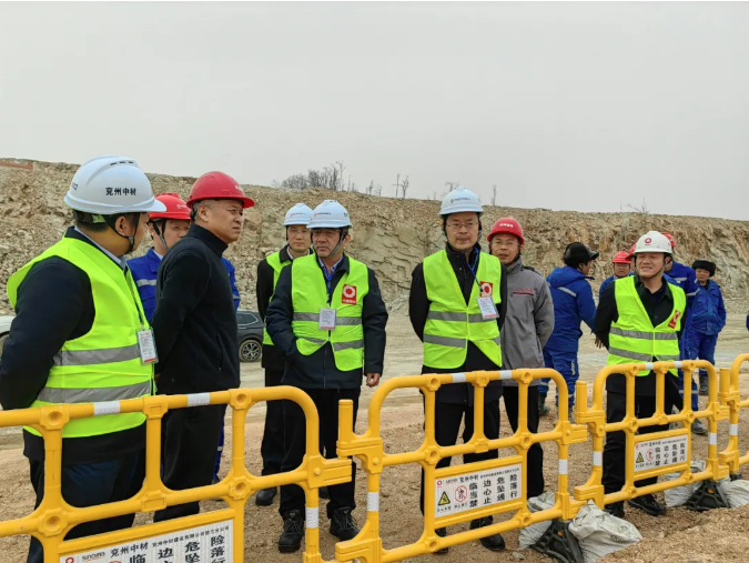 | 3月27日,中材國際黨委副書記、總裁朱兵,中材國際副總裁、中材礦山黨委書記、董事長郭正勇一行到兗州中材舒蘭分公司進(jìn)行調(diào)研。兗州中材總經(jīng)理顏景祥、中亞建材裝備有限公司董事長楊成剛陪同。