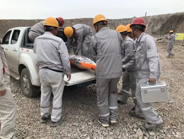 上午10時整,演練正式拉開序幕。假設(shè)情況是該露天礦山某區(qū)域發(fā)生了邊坡坍塌,造成一名作業(yè)人員腿部受傷被困。接到報告后,項目副經(jīng)理楊宇立即啟動應(yīng)急預(yù)案,迅速組織了由醫(yī)療救護(hù)組、應(yīng)急搶險組、警戒保衛(wèi)組、物資保障組等部門人員組成的應(yīng)急救援隊伍,攜帶救援裝備,迅速趕赴事故現(xiàn)場。同時,通訊保障組也迅速建立起臨時通訊網(wǎng)絡(luò),確保現(xiàn)場信息暢通無阻。